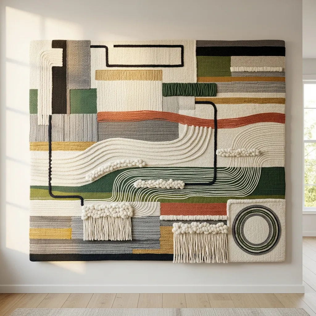 An exquisite textile art piece that serves as a statement wall decoration. Handcrafted using traditional techniques with modern design sensibilities. This panel adds texture, color, and artistic interest to your walls while maintaining the warmth of textile materials. Visual impact depends on room lighting and styling.
